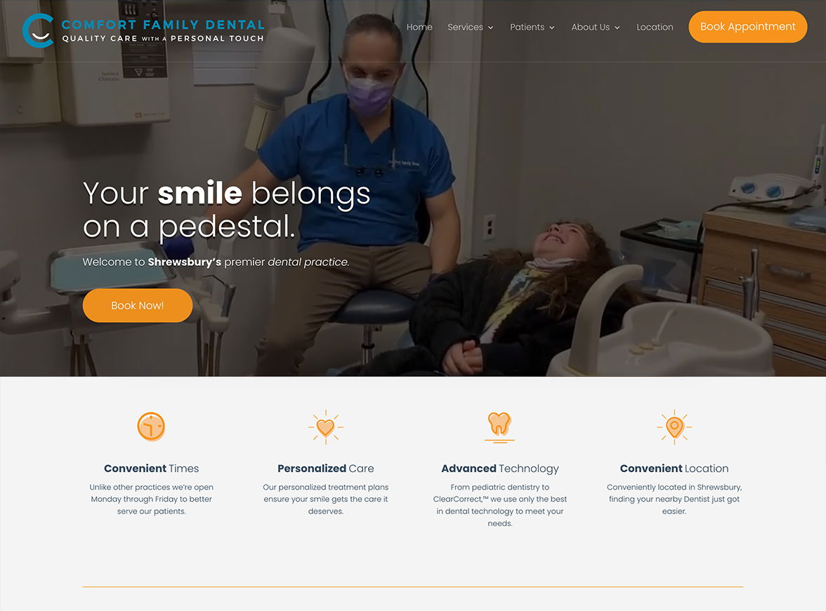 Meet the completely custom designs so good your jaw will drop. (Just say, “Ahhhh.”) We’re here to handle everything from initial ideation and wireframing — to UX, interface, visual, and responsive design. Every touchpoint of your practice is perfected.